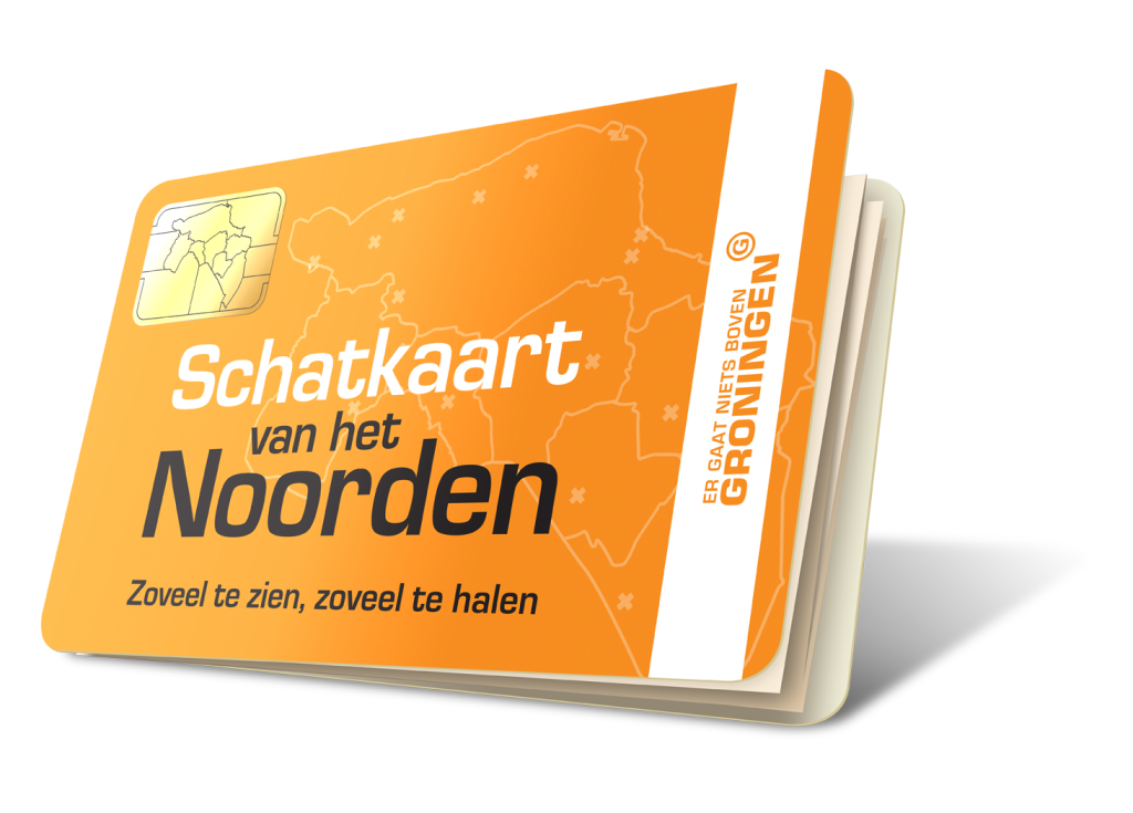 De Schatkaart van het Noorden. Een uitvouwbaar overzicht van 23 cultuurhistorische schatten in de provincie Groningen. Na registratie wordt de kaart ook nog eens voordeelpas. Bij NR6 ontwikkeld met Jobbert van Strien.